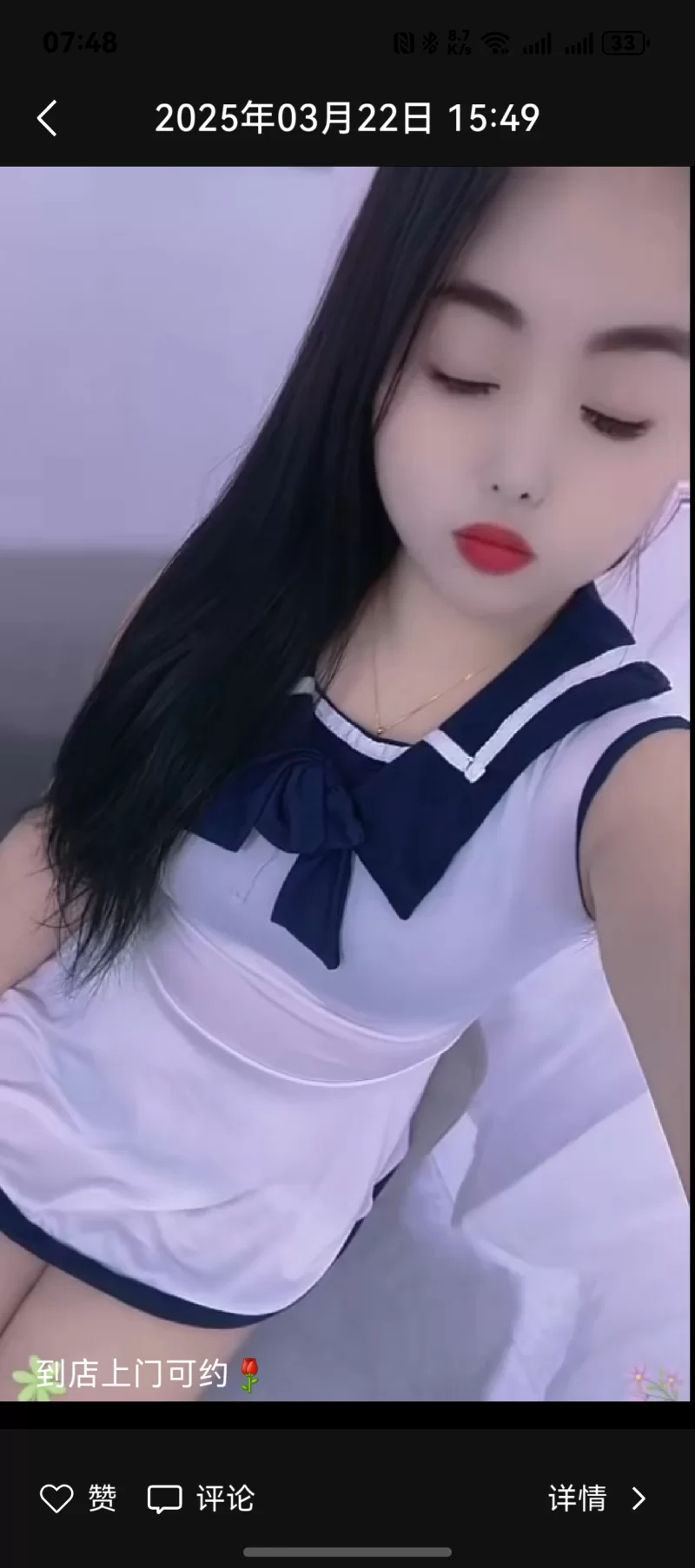 失效威客管理提示:要求付定金 保证金的,总之提前要钱的都是骗子 周末闲的无聊,便联系了妹子,刚好妹子有时间,第一次见妹子的时候,感觉跟图片差不多,是我喜欢的类型,啥话不说,开工,先进去洗个澡,出来,便迫不及待的抱起来妹子,搂着妹子的小蛮腰,真爽,妹子的皮肤还是挺滑的,摸着很舒服,妹子先口,感谢技术还行,毕竟妹子服务态度好,已经很不多了,之后便和妹子大战三百回合,交钱走人,下回有时间再去